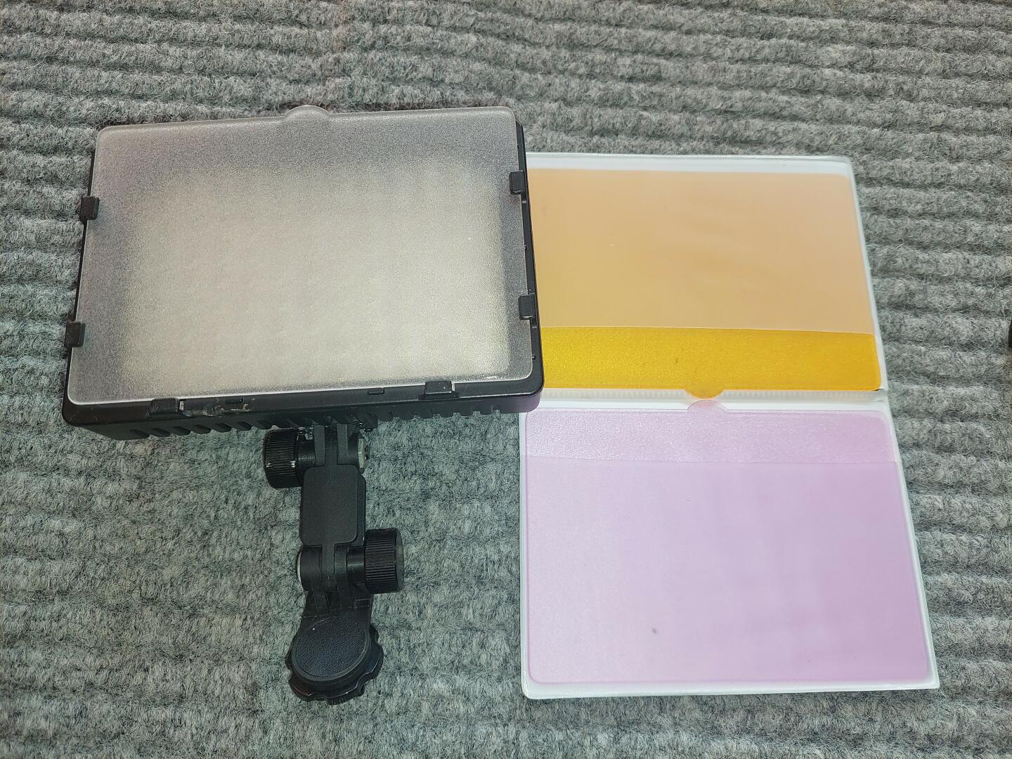 Lampa kamerowa ledowa do oświetlania pleneru z regulacją płynną świecenia oraz z różnymi filtrami podkładu
