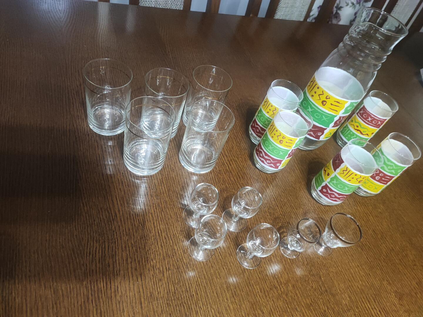 Oddam za Raffaello widoczne na zdjęciu kieliszki, szklanki z dzbankiem i szklanki