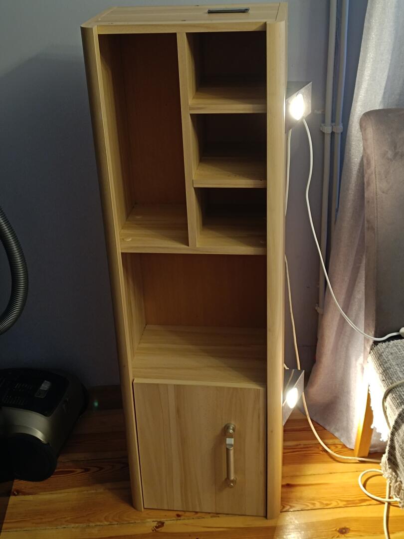 Sprzedam półkę wisząca z oświetleniem na dole, na zdjęciu stoi na boku.